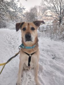 Hoewel hij nog geen commando’s kent en soms wat trekt aan de lijn, luistert hij wél naar zijn naam en is hij leergierig. Een beetje geduld en liefde doen wonderen bij deze mooie jongen. Gelukkig heeft hij geen jachtinstinct, dus wandelen is vooral genieten van de omgeving samen.