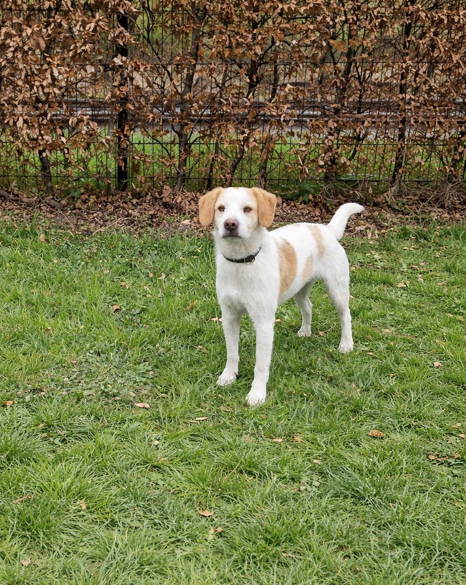 Ben heeft een schofthoogte van ongeveer 45 cm en weegt ca.15 kg. Hij is bij ons gekomen via een uitwisseling met het asiel Prodean la Linea, Spanje.