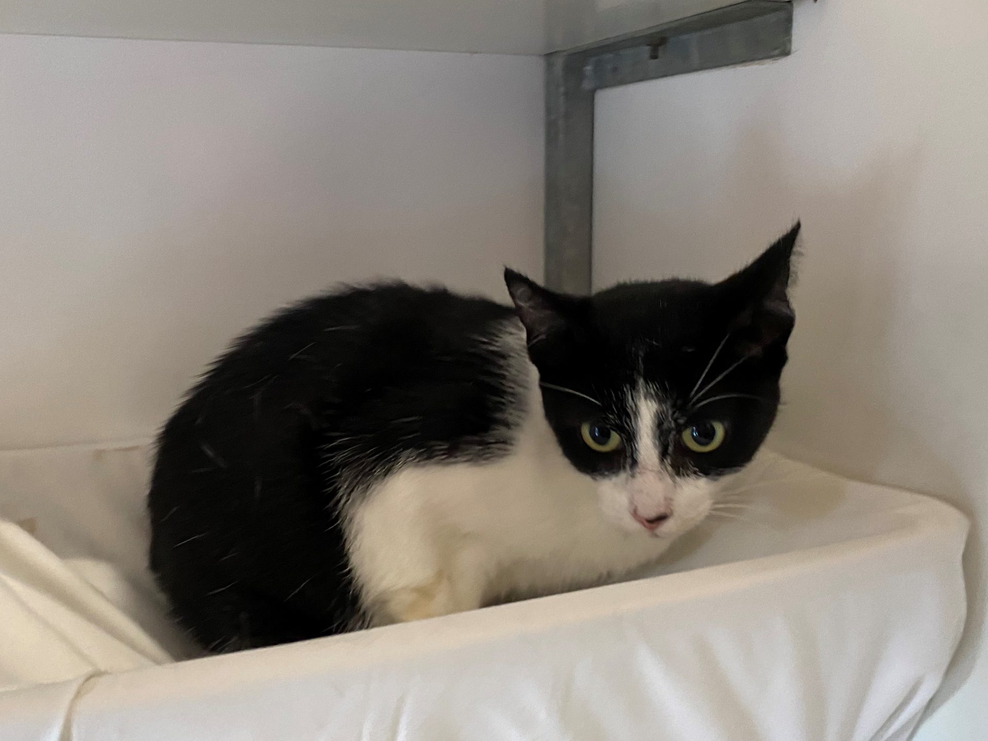 Tjesme is een lief verlegen poesje. Ze is zwanger binnengekomen, maar heeft helaas haar kittens verloren. Tjesme is zachtaardig, afwachtend en vraagt uit zichzelf niet om aandacht. Als je haar aanhaalt geniet ze hier wel van en wil dan het liefste dat je door blijft gaan met aaien en kroelen. Voor Tjesme zoeken we een rustig nieuw thuis.